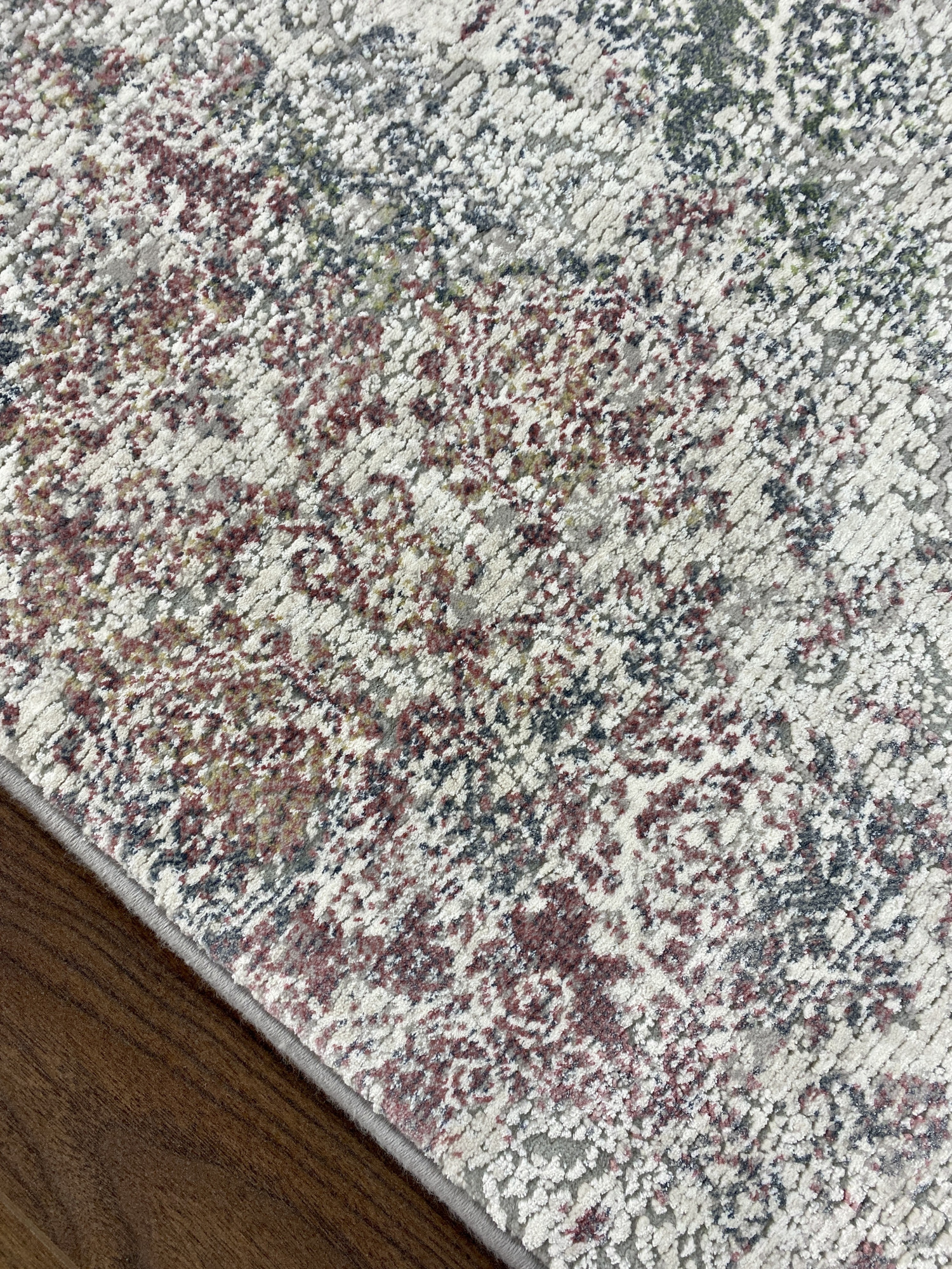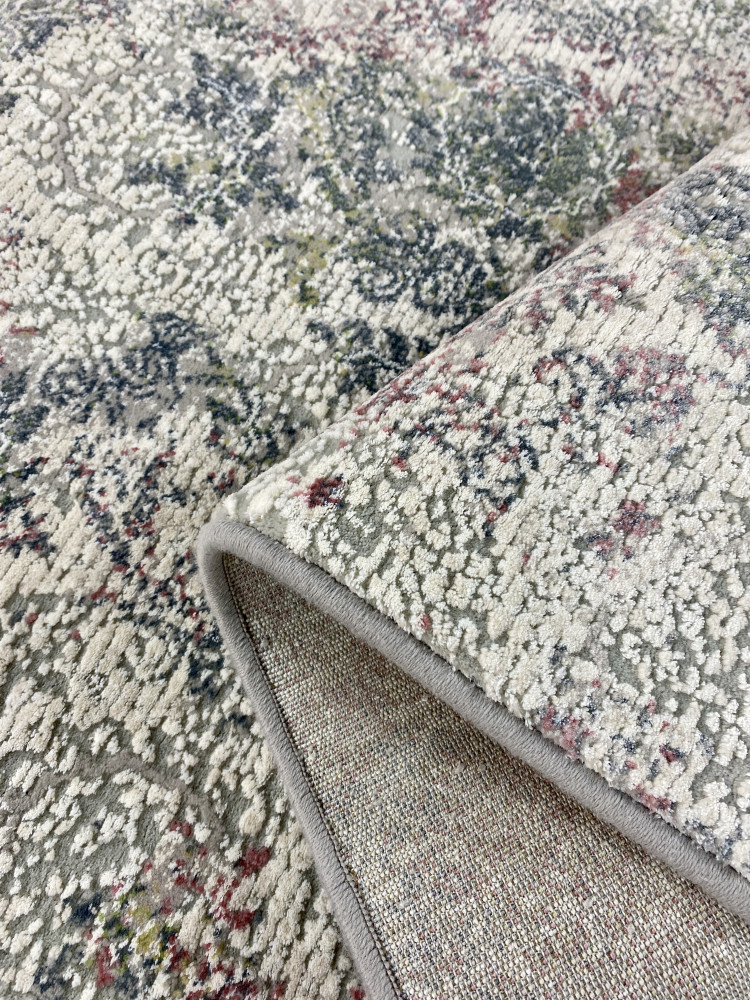 Решение об использовании в составе двух материалов: полипропилена и полиэстера позволило производителю создать эти ковры фактурными. Основной фон выполнен из полипропилена, он имеет матовую поверхность и более упругий, а узор выполнен из полиэстера, который имеет способность отражать свет - создаётся эффект перелива. Полиэстер, используемый в коврах этой коллекции обладает мягкостью и будет дарить Вам приятные тактильные ощущения.