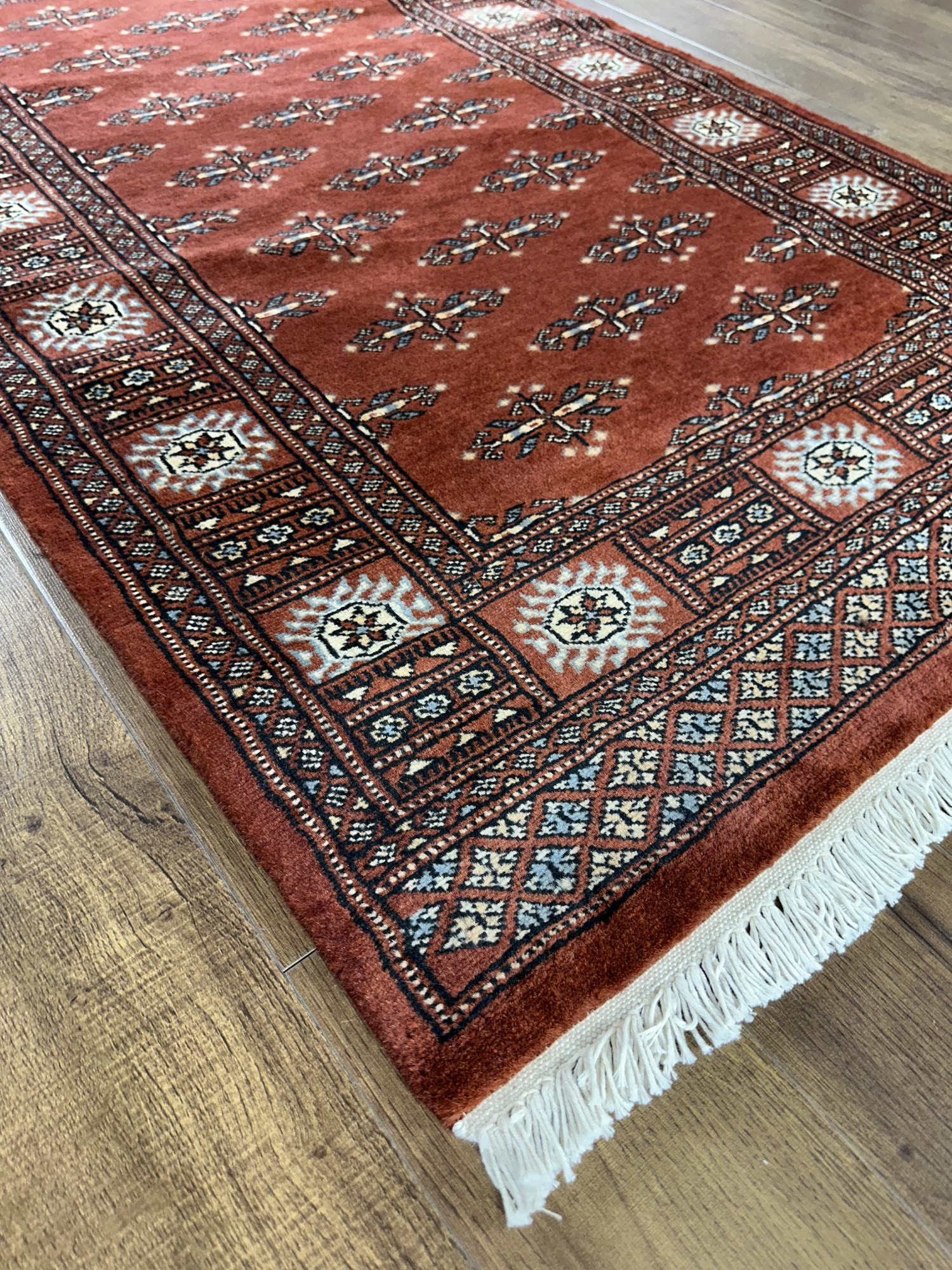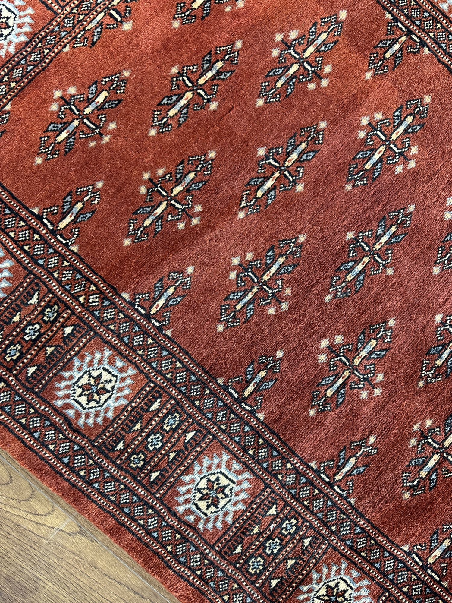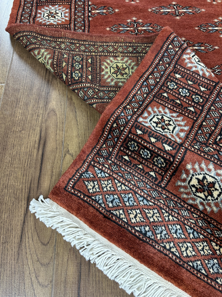 Ковры из коллекции Pakistan Bokhara имеют отличительные особенности: мягкую лоснистую шерсть, которая получается по завершении всех этапов уникальной технологии и узор – один из самых известных туркменских узоров – «Бухара».