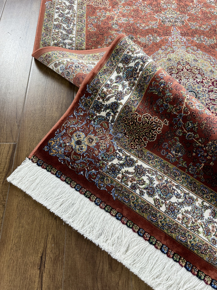 Цена. В сравнении с шёлковыми коврами ручной работы эти ковры в несколько раз дешевле. Разница в цене объясняется не только тем, что натуральный шёлк – невероятно дорогой и сложный в производстве и окрашивании материал, но и тем, что на изготовление 1м2 сопоставимого качества ковра ручной работы требуется около 3 месяцев.