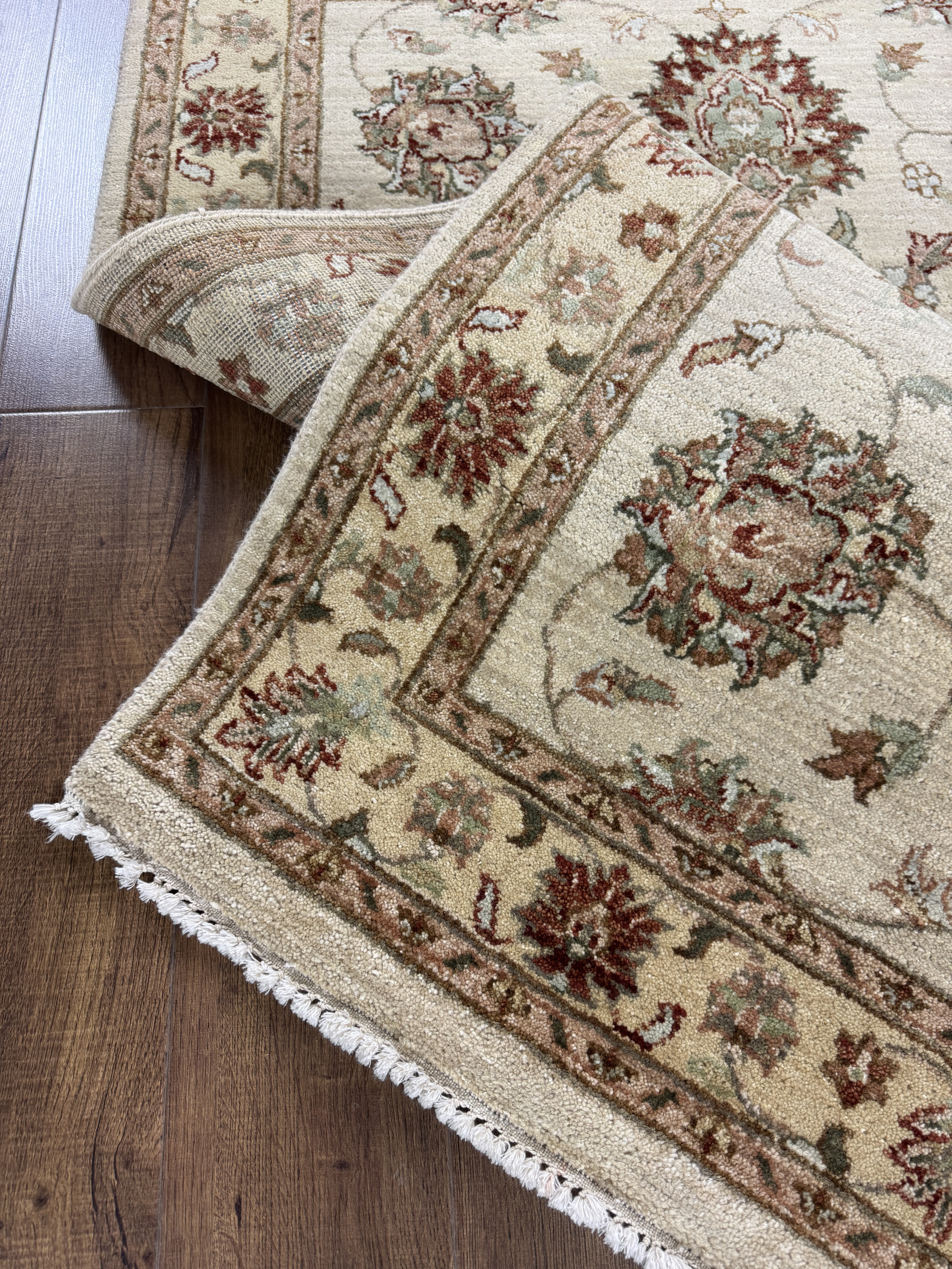 Ковры сотканы из настоящей овечьей шерсти. Это позволяет ковру хранить и передавать тепло независимо от температуры помещения, где он находится. Преимуществом ковров из шерсти является их долговечность, износоустойчивость, простота в уходе.