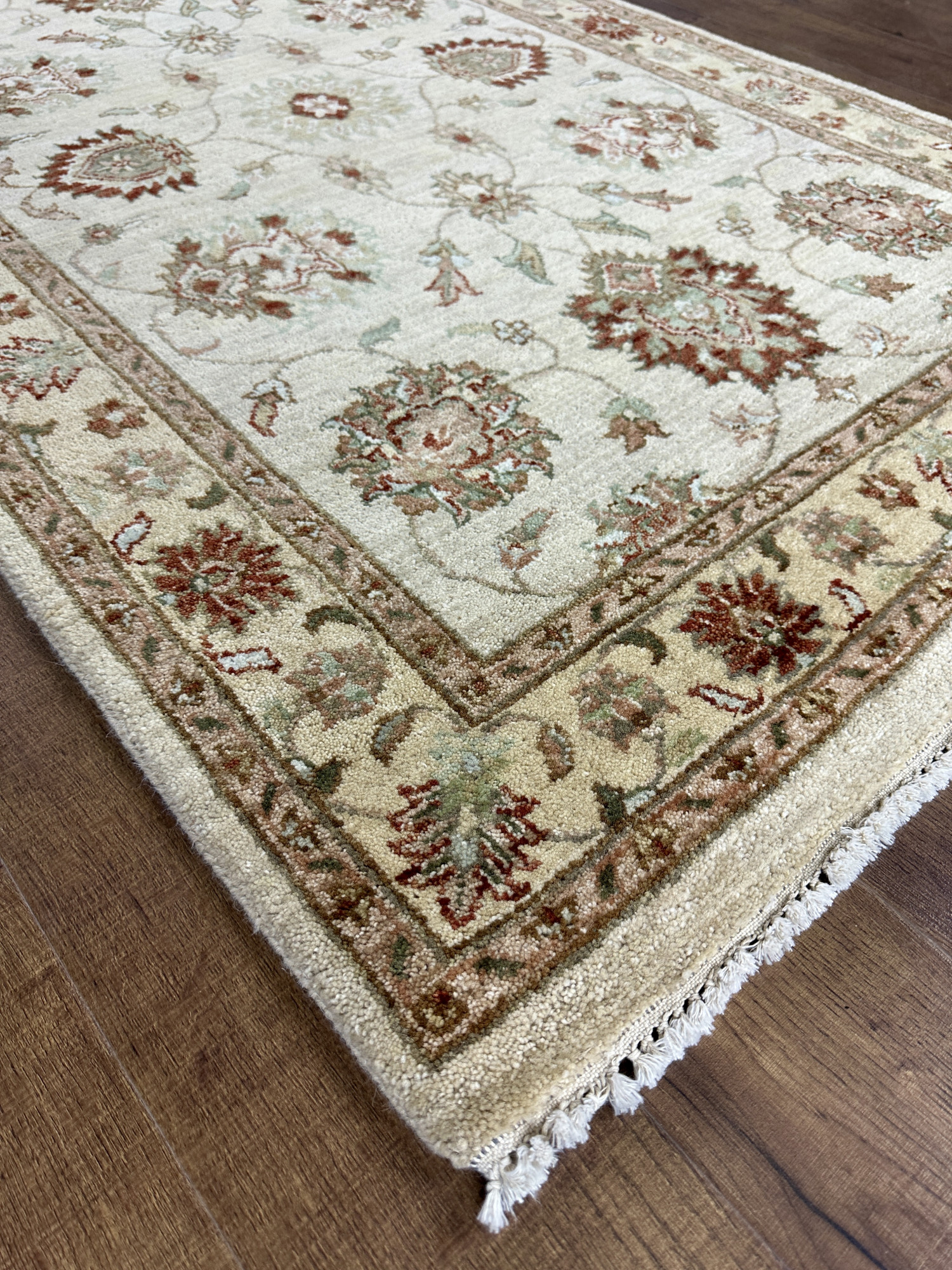 Ковёр Indien Ziegler исполнен в винтажном стиле, с приглушенными оттенками ярких цветов. Особенностью этих ковров является то, что при традиционной концепции узора, ковры не выглядят слишком акцентными и могут подойти не только в классические интерьеры, но и в современные. Хорошо сочетаются с натуральными материалами, в частности с деревом.