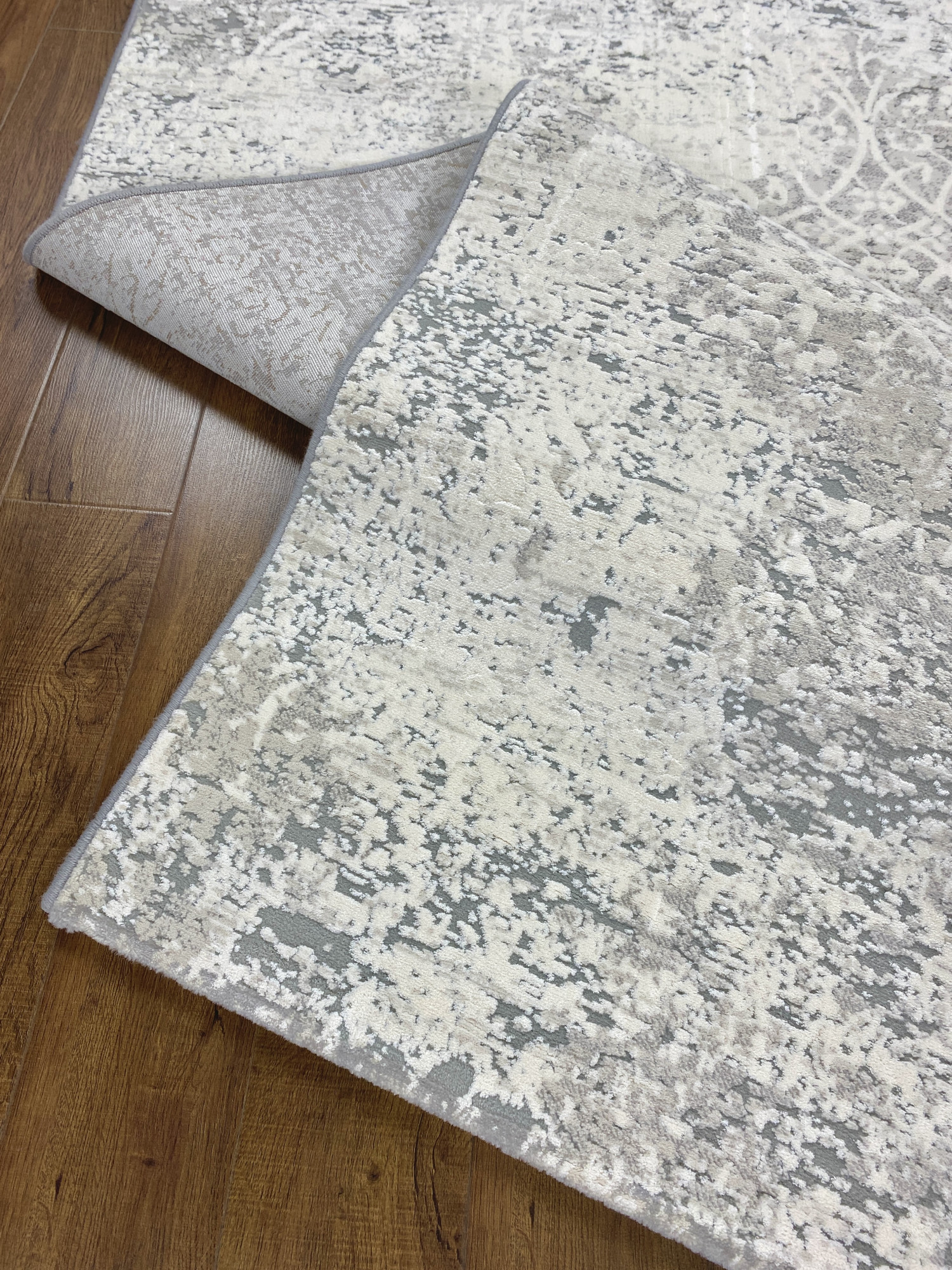 Решение об использовании в составе двух материалов: полипропилена и полиэстера позволило производителю создать эти ковры фактурными. Основной фон выполнен из полипропилена, он имеет матовую поверхность и более упругий, а узор выполнен из полиэстера, который имеет способность отражать свет - создаётся эффект перелива. Полиэстер, используемый в коврах этой коллекции обладает мягкостью и будет дарить Вам приятные тактильные ощущения.