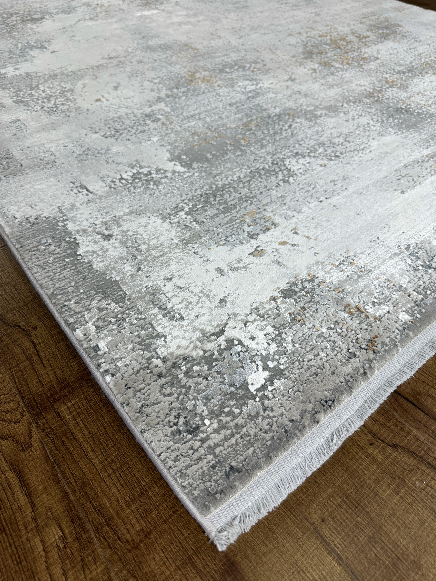 Ковёр из премиальной коллекции ковров Abstract Silk от турецкого производителя выполнен из комбинации двух материалов: экологичного акрила, который используется в изготовлении ковров в качестве альтернативы шерсти и высококачественного модернизированного вискозного волокна - модала. Модал известен тем, что этот материал повторяет свойства натурального шёлка, меняет цвет, переливается, играет красками в зависимости от освещения и угла обзора, а также передаёт мягкие, нежные тактильные ощущения. Сочетание двух материалов позволяет ковру передавать не обычные визуальные ощущения: акрил имеет матовую поверхность, а модал, напротив, обладает глянцевой поверхностью.