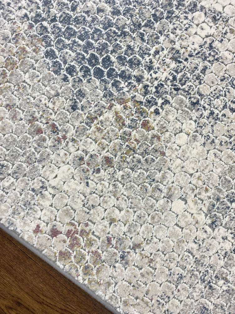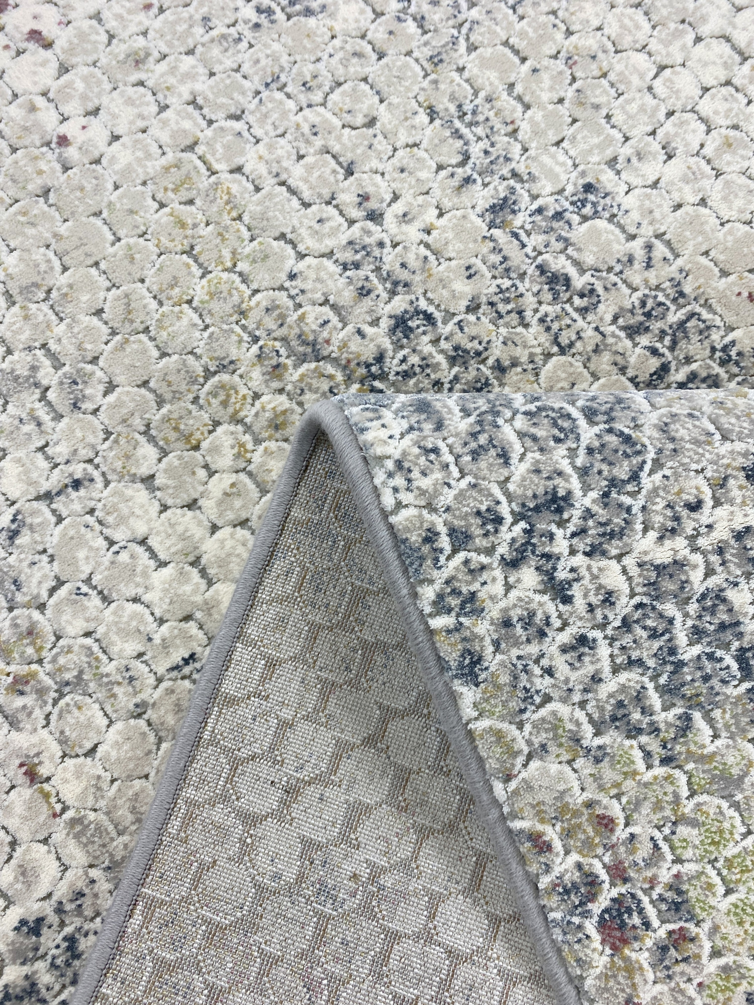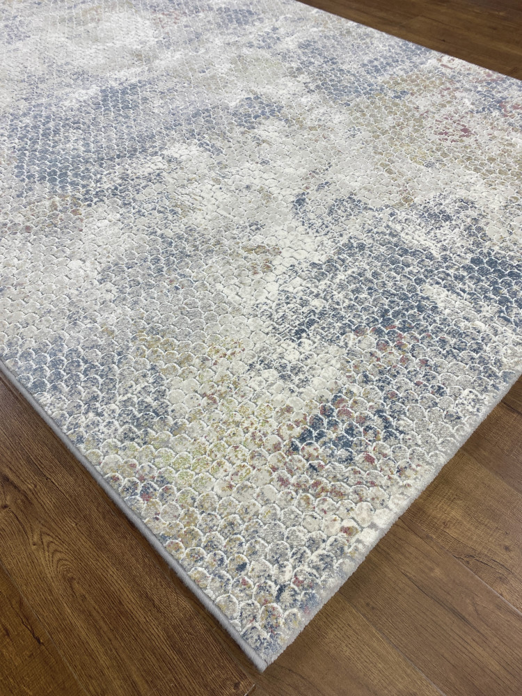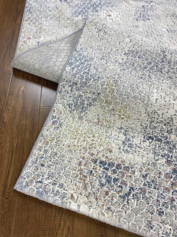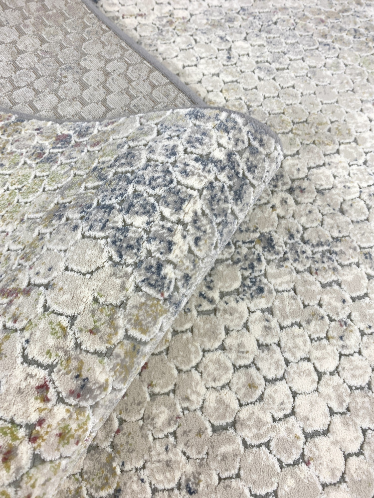 Решение об использовании в составе двух материалов: полипропилена и полиэстера позволило производителю создать эти ковры фактурными. Основной фон выполнен из полипропилена, он имеет матовую поверхность и более упругий, а узор выполнен из полиэстера, который имеет способность отражать свет - создаётся эффект перелива. Полиэстер, используемый в коврах этой коллекции обладает мягкостью и будет дарить Вам приятные тактильные ощущения.