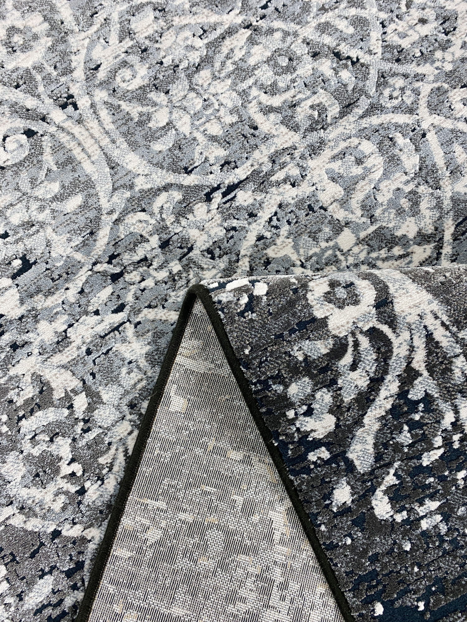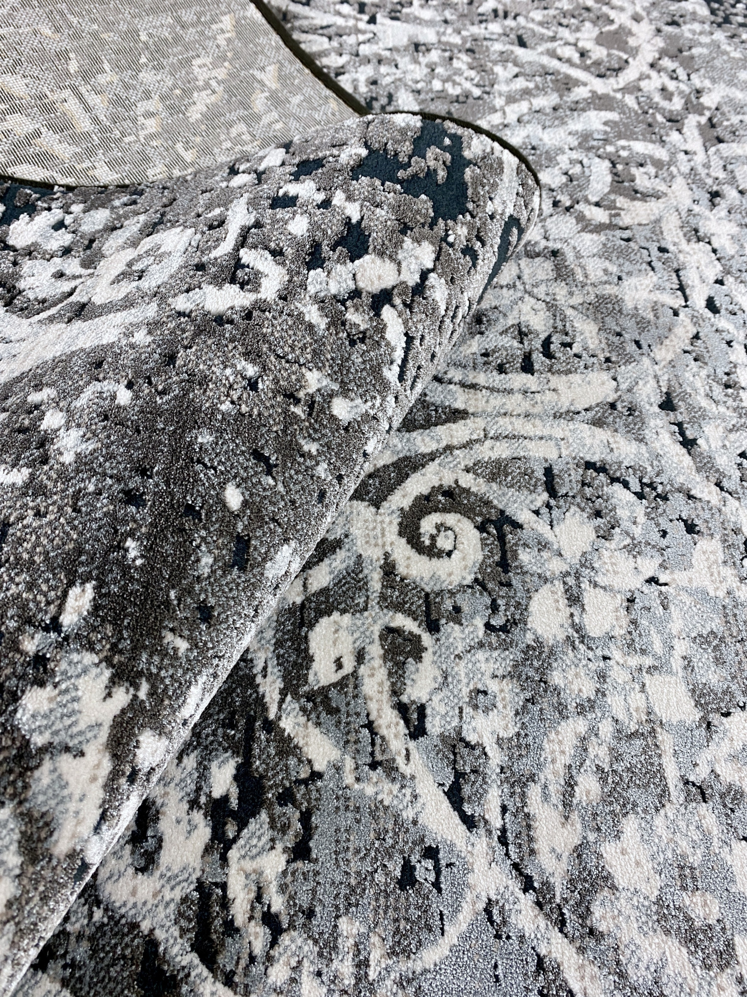 Решение об использовании в составе двух материалов: полипропилена и полиэстера позволило производителю создать эти ковры фактурными. Основной фон выполнен из полипропилена, он имеет матовую поверхность и более упругий, а узор выполнен из полиэстера, который имеет способность отражать свет - создаётся эффект перелива. Полиэстер, используемый в коврах этой коллекции обладает мягкостью и будет дарить Вам приятные тактильные ощущения.