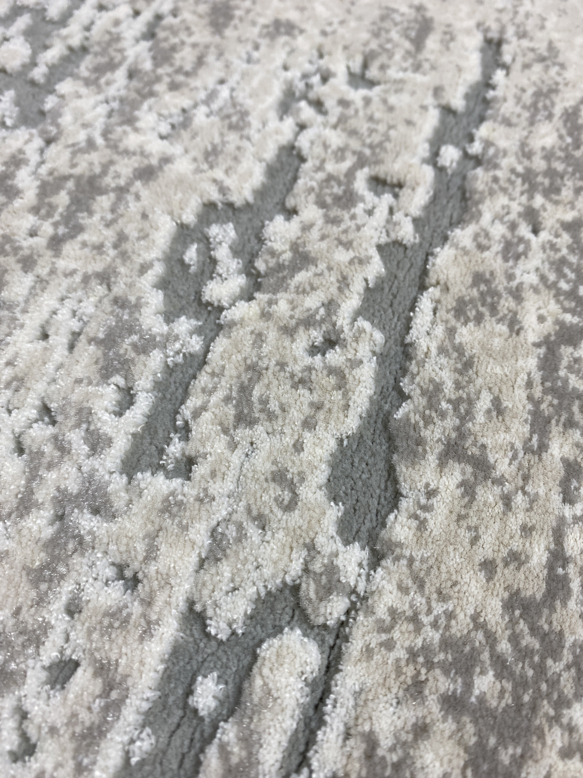 Решение об использовании в составе двух материалов: полипропилена и полиэстера позволило производителю создать эти ковры фактурными. Основной фон выполнен из полипропилена, он имеет матовую поверхность и более упругий, а узор выполнен из полиэстера, который имеет способность отражать свет - создаётся эффект перелива. Полиэстер, используемый в коврах этой коллекции обладает мягкостью и будет дарить Вам приятные тактильные ощущения.