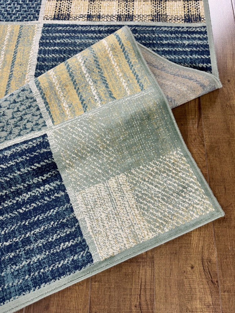 Ковёр лёгкий по весу за счёт лёгкости самого материала и невысокой высоты ворса (5мм). В качестве решения для упрощения эксплуатации производитель использовал очень тонкий слой специальной силиконовой пропитки, для того чтобы ковёр «не ездил» по полу.