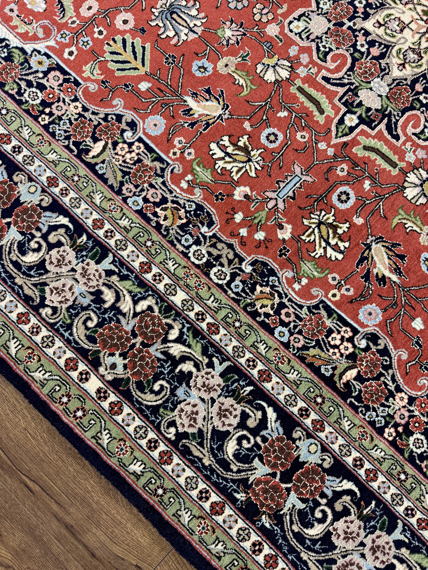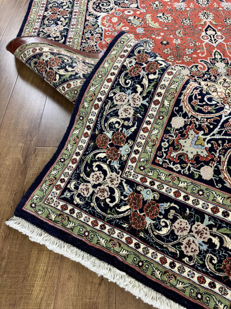 Иранский ковёр ручной работы, выполненный из шерсти. Этот ковёр является произведением искусства и представляет ценность как носитель культуры ковроткачества провинции Кашан, история которой исчисляется несколькими веками. В ковре очень высокая плотность узелков на м2 (500.000 узелков/1м2), ковры такой плотности ткутся только высочайшими мастерами. Все красители, использованные для окрашивания шерстяных нитей ковра, добывались из насекомых и растений. Для создания ковра мастеру потребовалось около 6-7 месяцев ежедневной работы для создания такого относительно небольшого ковра.