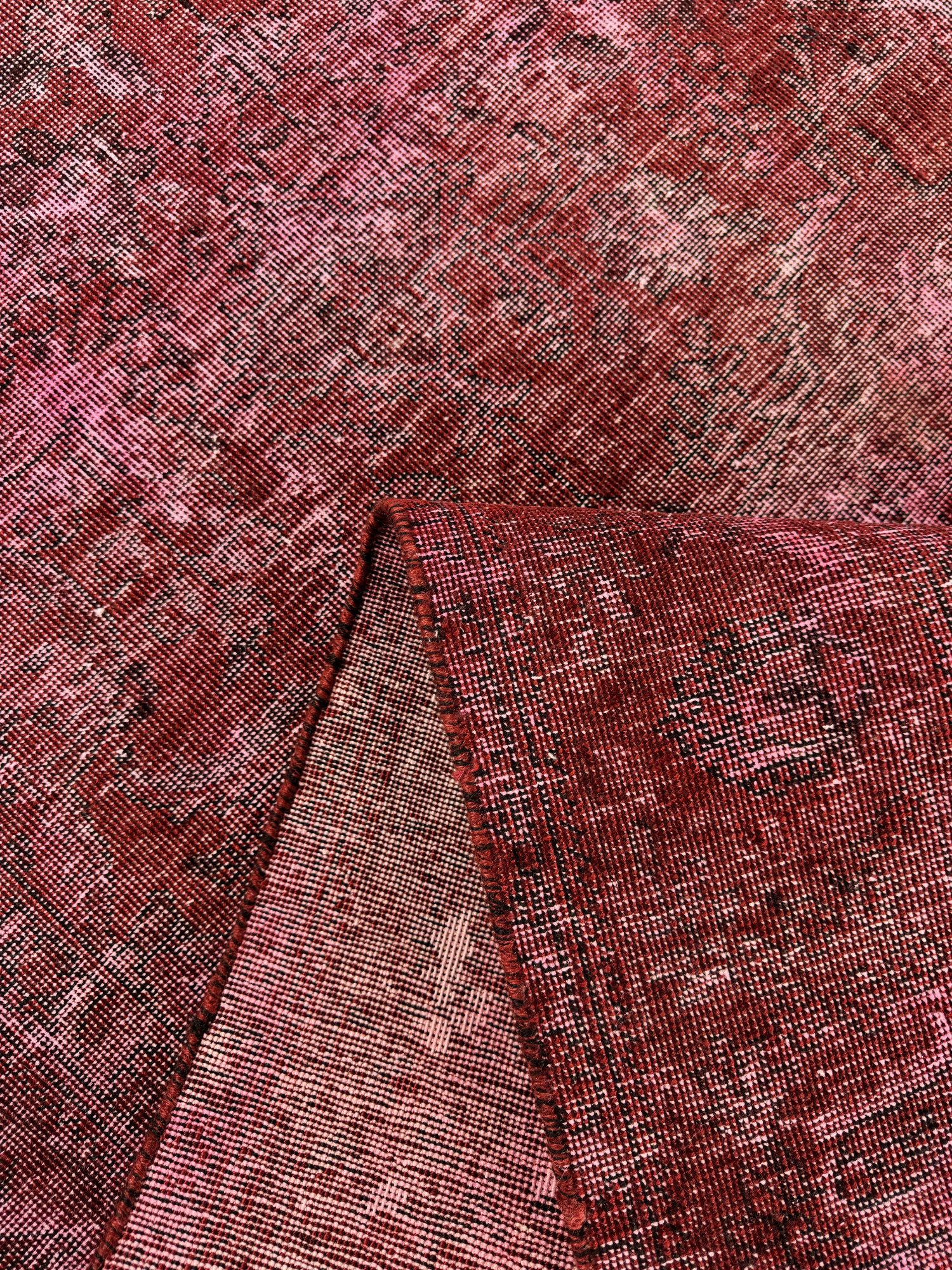 На обратной стороне ковра, для поддержания формы изделия, к основанию ковра мастером пришита плотная хлопковая ткань.