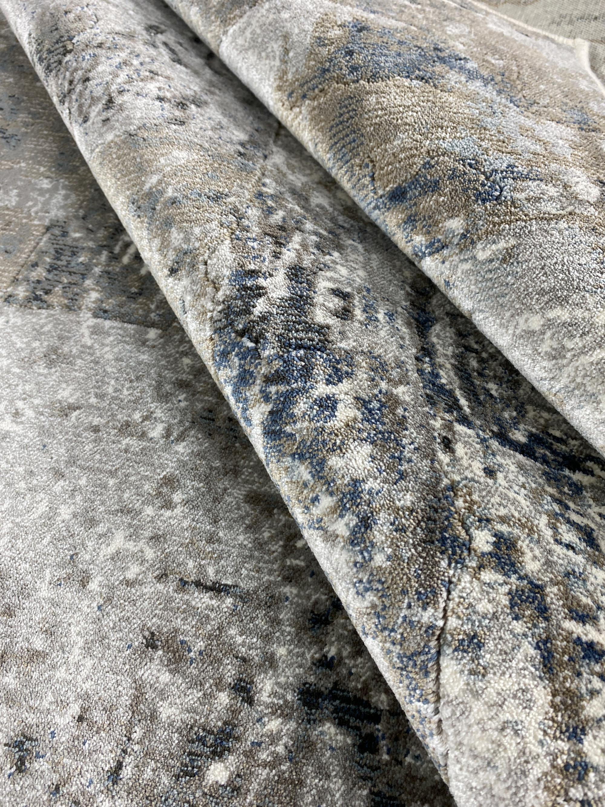 Ковёр из коллекции Galaxy Silk выполнен из высококачественного вискозного волокна, также встречаются другие названия этого материала: арт шёлк, бамбуковый шёлк, и другие виды искусственного шёлка. Вискоза известна тем, что этот материал повторяет свойства натурального шёлка, меняет цвет, переливается, играет красками в зависимости от освещения и угла обзора, а также вискоза передаёт мягкие, нежные тактильные ощущения.