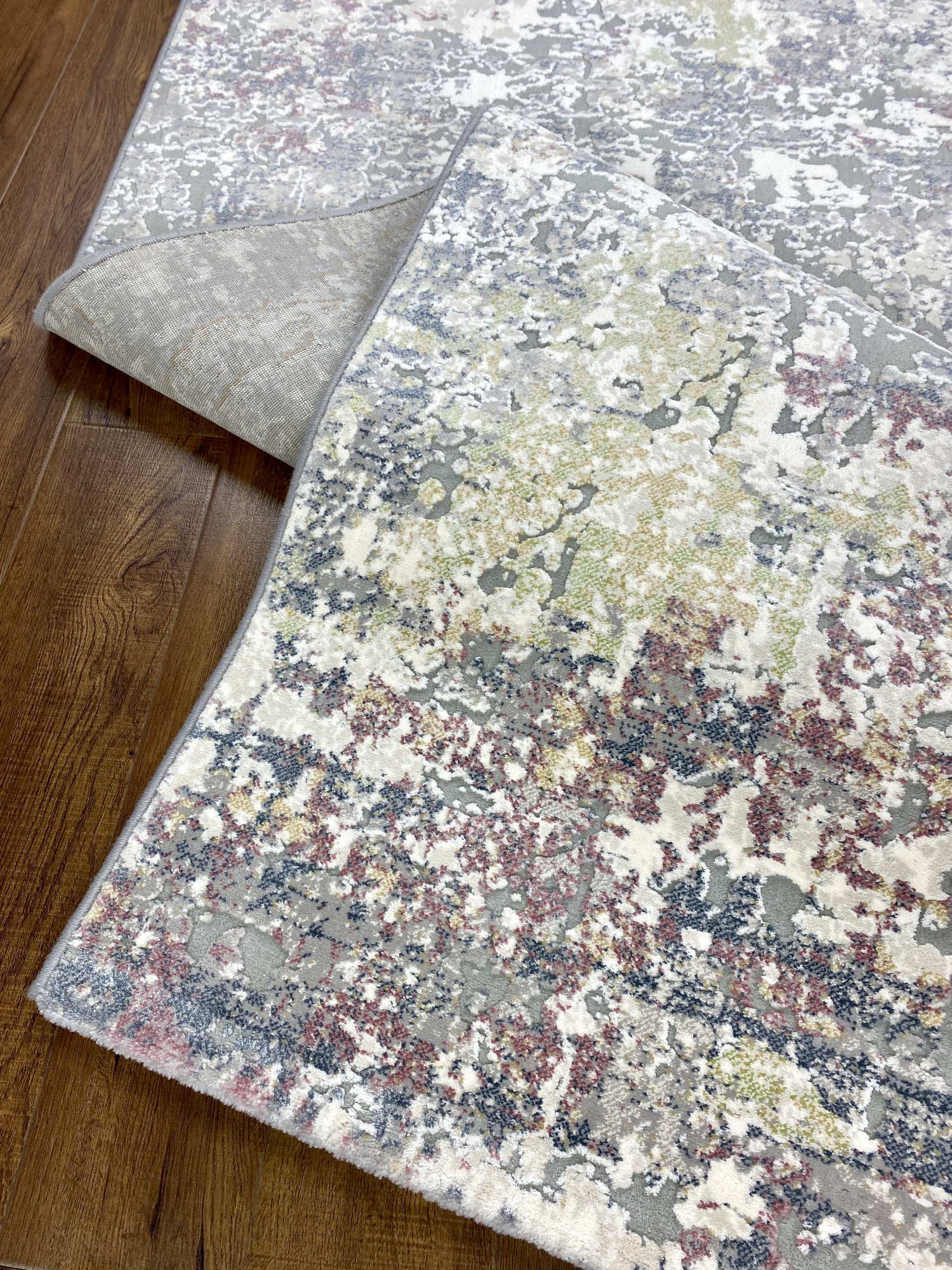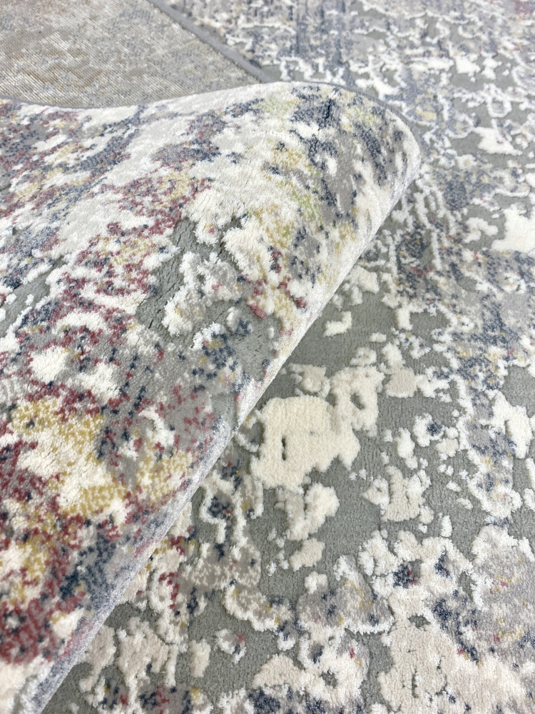 Решение об использовании в составе двух материалов: полипропилена и полиэстера позволило производителю создать эти ковры фактурными. Основной фон выполнен из полипропилена, он имеет матовую поверхность и более упругий, а узор выполнен из полиэстера, который имеет способность отражать свет - создаётся эффект перелива. Полиэстер, используемый в коврах этой коллекции обладает мягкостью и будет дарить Вам приятные тактильные ощущения.