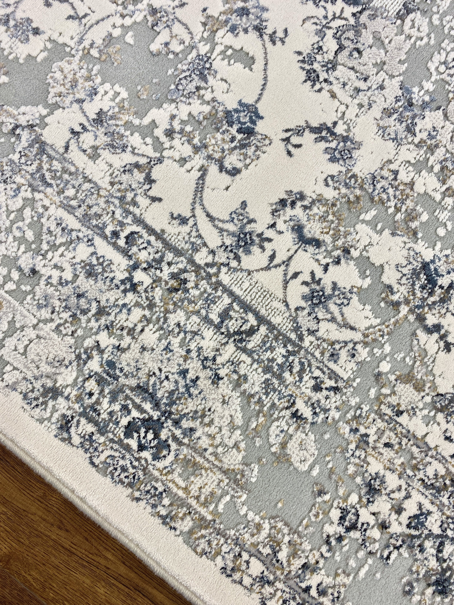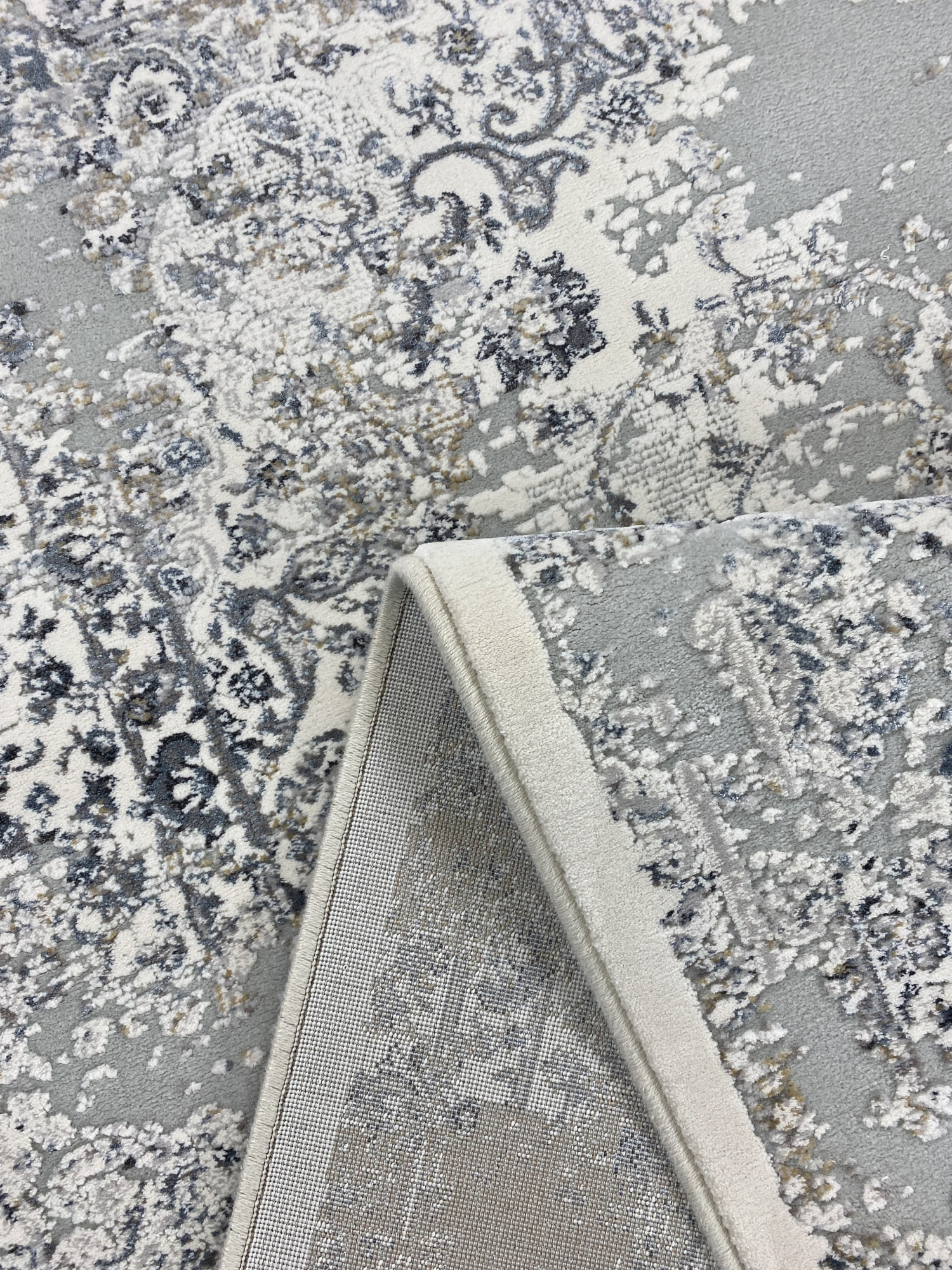 Решение об использовании в составе двух материалов: полипропилена и полиэстера позволило производителю создать эти ковры фактурными. Основной фон выполнен из полипропилена, он имеет матовую поверхность и более упругий, а узор выполнен из полиэстера, который имеет способность отражать свет - создаётся эффект перелива. Полиэстер, используемый в коврах этой коллекции обладает мягкостью и будет дарить Вам приятные тактильные ощущения.