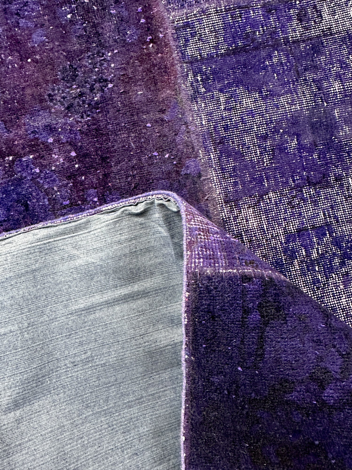 На обратной стороне ковра, для поддержания формы изделия, к основанию ковра мастером пришита плотная хлопковая ткань.
