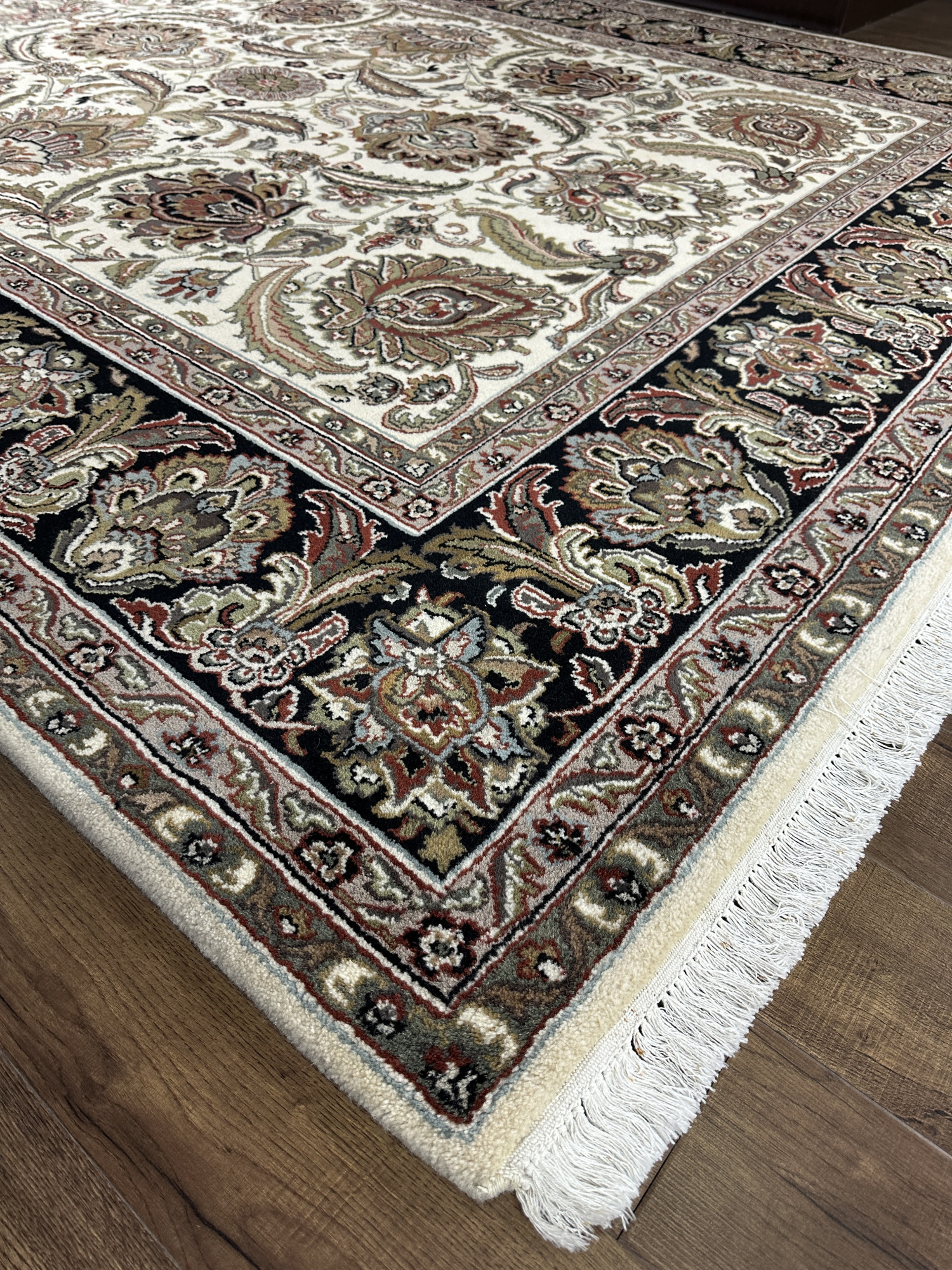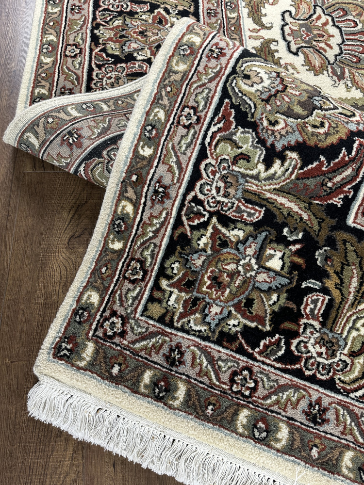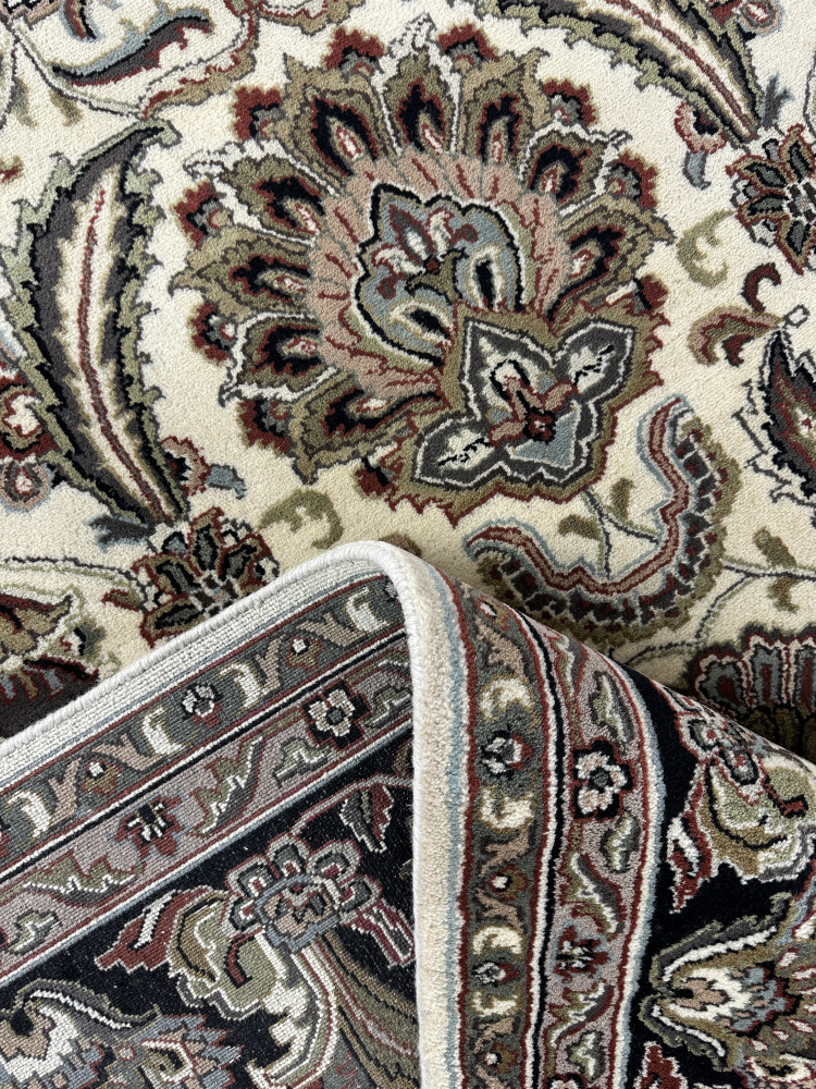 Индийские ковры ручной работы из коллекции Indien Keshan сотканы из подготовленной вручную, и окрашенной красителями натурального происхождения (животного и растительного происхождения), овечьей шерсти. Это позволяет ковру хранить и передавать тепло независимо от температуры помещения, где он находится. Преимуществом ковров из шерсти является их долговечность, износоустойчивость, простота в уходе.