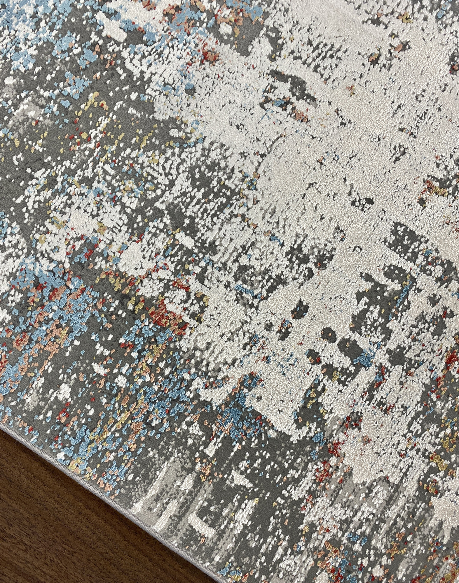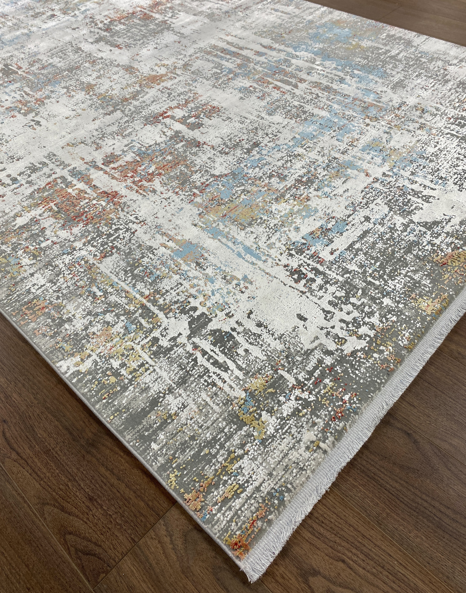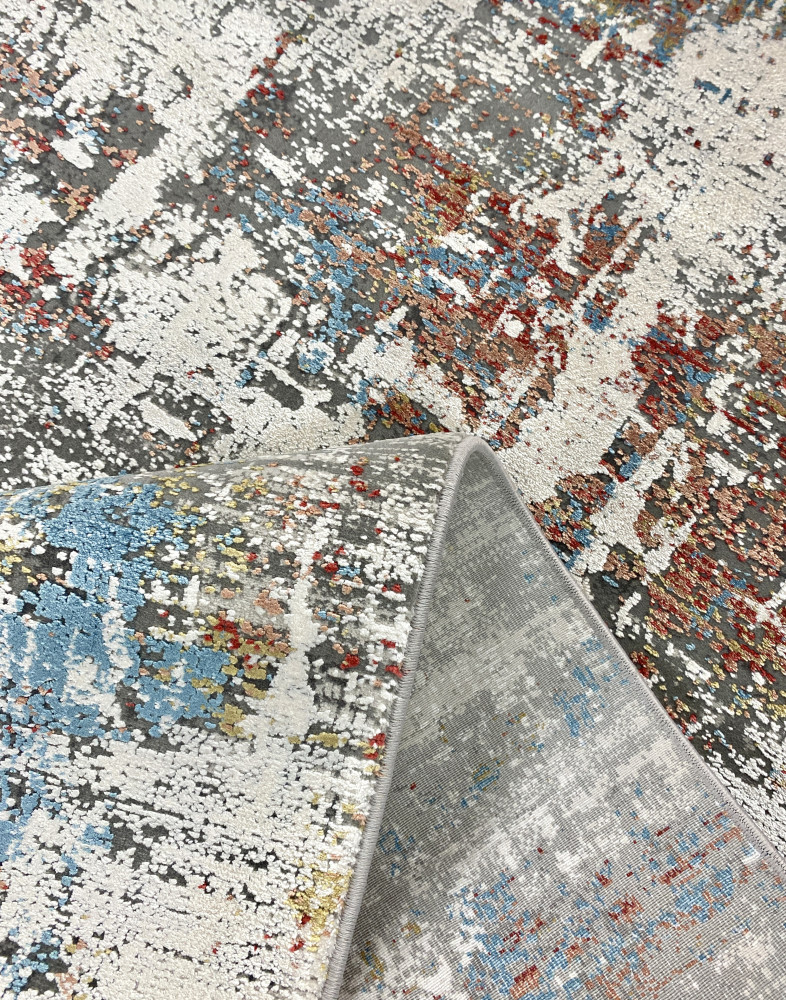 Ковёр из премиальной коллекции ковров Abstract Silk от турецкого производителя выполнен из комбинации двух материалов: экологичного акрила, который используется в изготовлении ковров в качестве альтернативы шерсти и высококачественного модернизированного вискозного волокна - модала. Модал известен тем, что этот материал повторяет свойства натурального шёлка, меняет цвет, переливается, играет красками в зависимости от освещения и угла обзора, а также передаёт мягкие, нежные тактильные ощущения. Сочетание двух материалов позволяет ковру передавать не обычные визуальные ощущения: акрил имеет матовую поверхность, а модал, напротив, обладает глянцевой поверхностью.