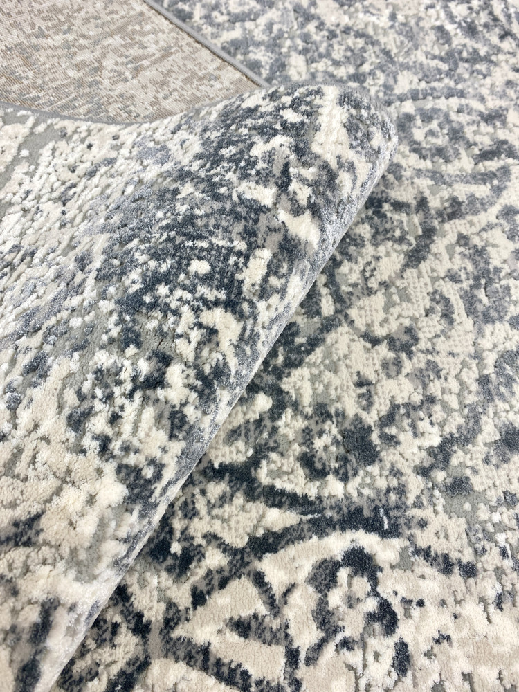 Решение об использовании в составе двух материалов: полипропилена и полиэстера позволило производителю создать эти ковры фактурными. Основной фон выполнен из полипропилена, он имеет матовую поверхность и более упругий, а узор выполнен из полиэстера, который имеет способность отражать свет - создаётся эффект перелива. Полиэстер, используемый в коврах этой коллекции обладает мягкостью и будет дарить Вам приятные тактильные ощущения.