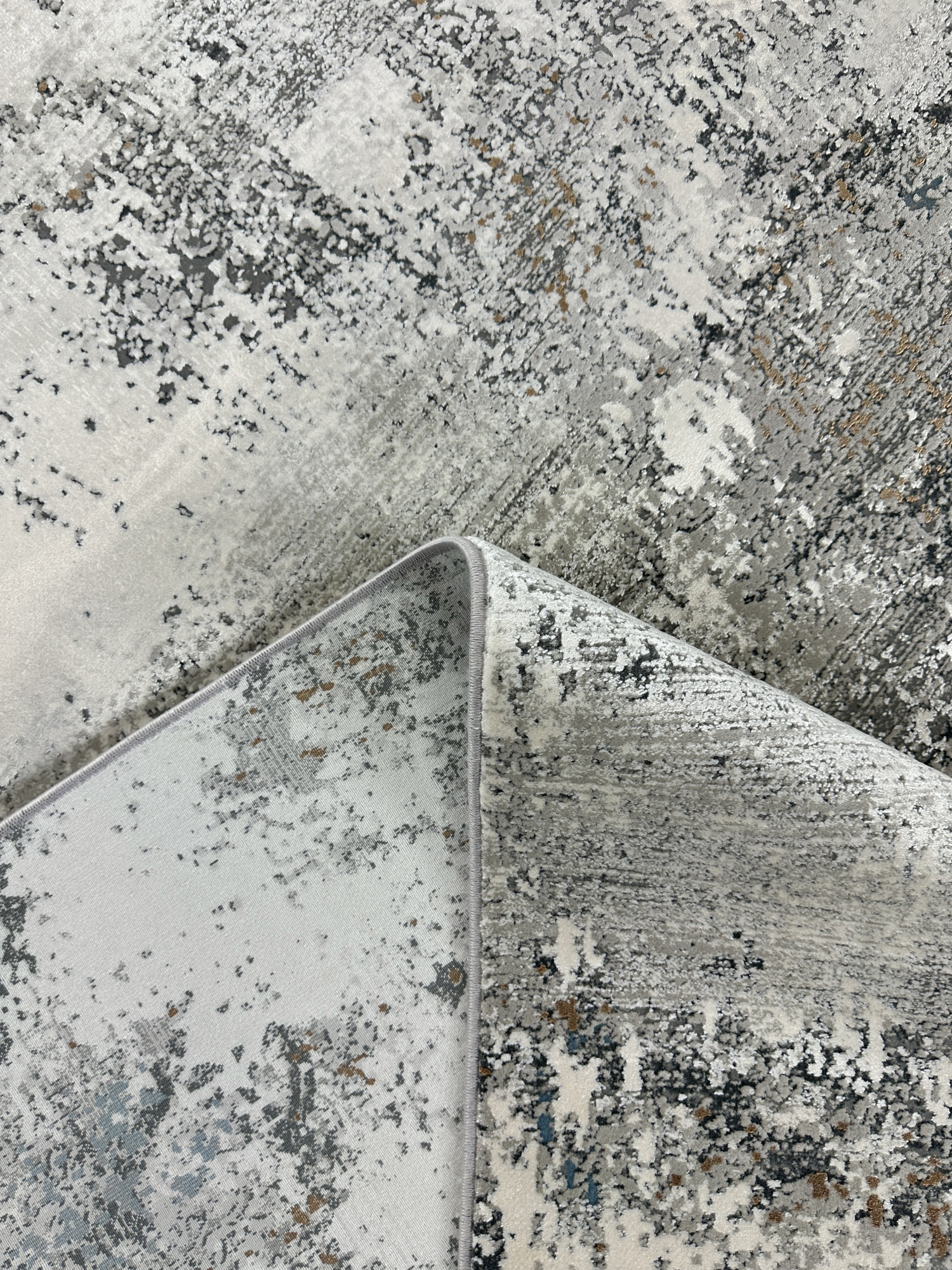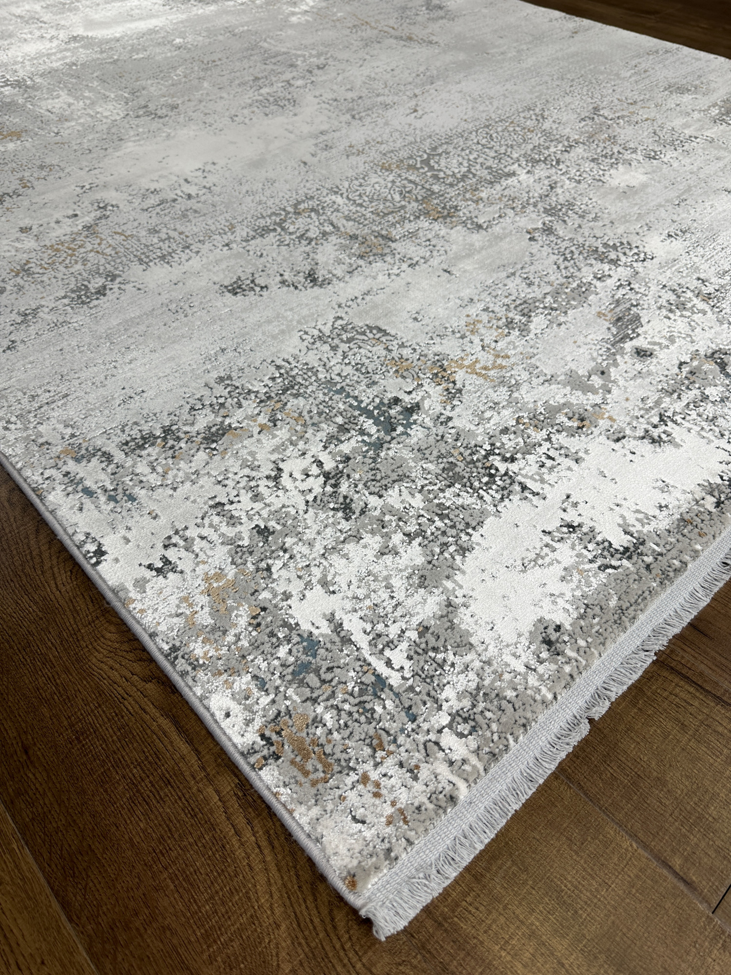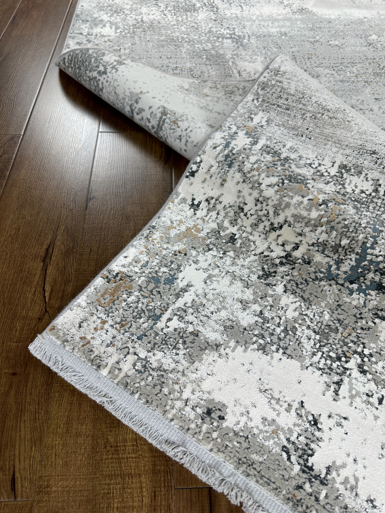 Ковёр из премиальной коллекции ковров Abstract Silk от турецкого производителя выполнен из комбинации двух материалов: экологичного акрила, который используется в изготовлении ковров в качестве альтернативы шерсти и высококачественного модернизированного вискозного волокна - модала. Модал известен тем, что этот материал повторяет свойства натурального шёлка, меняет цвет, переливается, играет красками в зависимости от освещения и угла обзора, а также передаёт мягкие, нежные тактильные ощущения. Сочетание двух материалов позволяет ковру передавать не обычные визуальные ощущения: акрил имеет матовую поверхность, а модал, напротив, обладает глянцевой поверхностью.