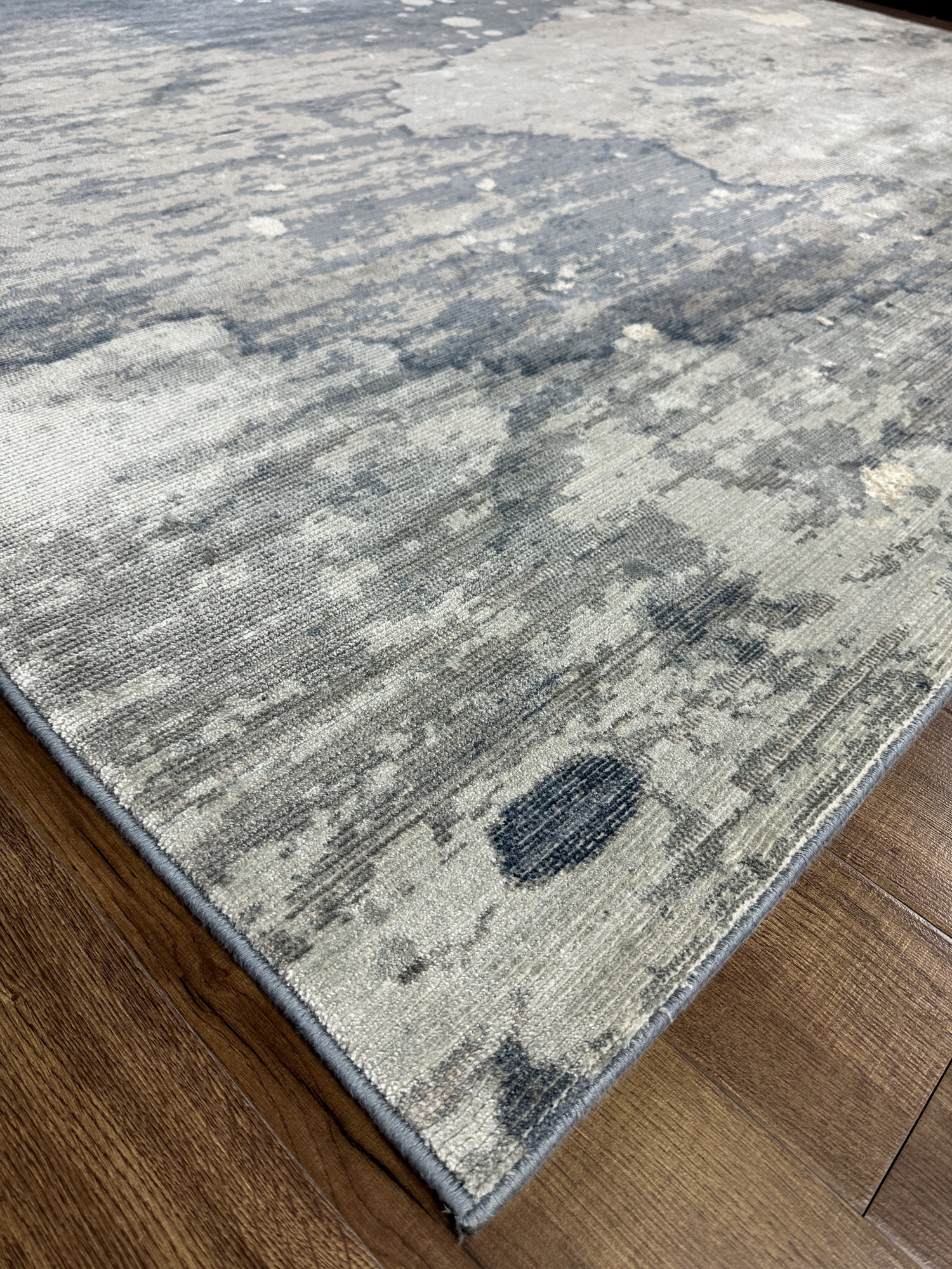 Ковёр из коллекции Radiant выполнен из комбинации двух материалов: экологичного полипропилена и высококачественного вискозного волокна, также встречаются другие названия этого материала: арт шёлк, бамбуковый шёлк, и другие виды искусственного шёлка. Вискоза известна тем, что этот материал повторяет свойства натурального шёлка, меняет цвет, переливается, играет красками в зависимости от освещения и угла обзора, а также вискоза передаёт мягкие, нежные тактильные ощущения. Сочетание двух материалов позволяет ковру передавать не обычные визуальные ощущения: полипропилен имеет матовую поверхность, а вискоза, напротив, обладает глянцевой поверхностью.