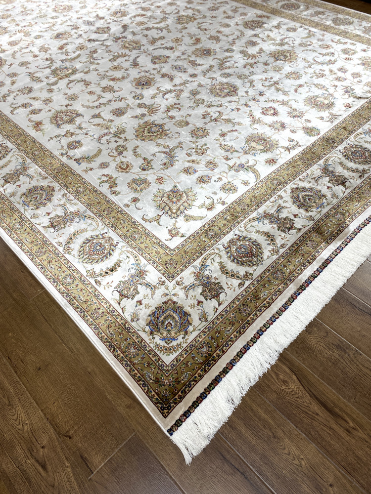 Цена. В сравнении с шёлковыми коврами ручной работы эти ковры в несколько раз дешевле. Разница в цене объясняется не только тем, что натуральный шёлк – невероятно дорогой и сложный в производстве и окрашивании материал, но и тем, что на изготовление 1м2 сопоставимого качества ковра ручной работы требуется около 3 месяцев.