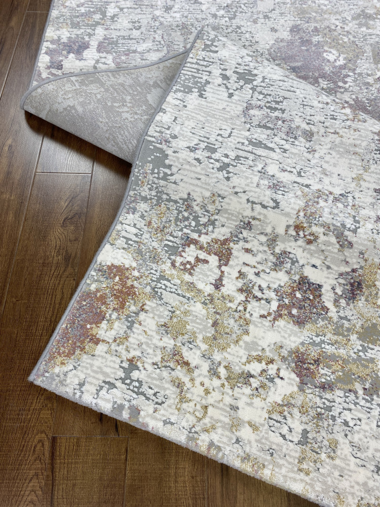 Решение об использовании в составе двух материалов: полипропилена и полиэстера позволило производителю создать эти ковры фактурными. Основной фон выполнен из полипропилена, он имеет матовую поверхность и более упругий, а узор выполнен из полиэстера, который имеет способность отражать свет - создаётся эффект перелива. Полиэстер, используемый в коврах этой коллекции обладает мягкостью и будет дарить Вам приятные тактильные ощущения.